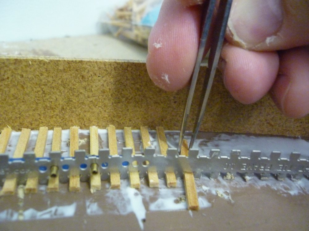 The advantage I see to the Monster tie plates is that the will be easier to handle. The Proto87 Stores tie plates bend easily, slip easily while spiking & while easier to slide them underneath the rail, the slim profile also makes harder to compensate for any uneven ties.